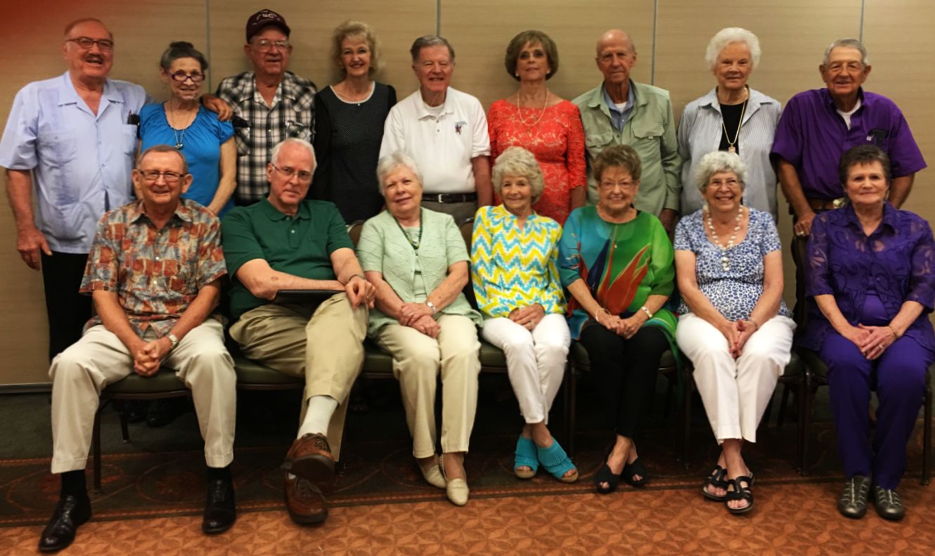 RHS-1956 Homecoming in 2016 (enlarge) Back row: Pete Tibbels, Tom Sutton, Johnny Swinney, Betty Wells Swinney, Ben Robinson. Front row: Mary Lou Wright, Donna Blackwell Bell, Barbara Nichols McPherson, Bob Downtain, Beverley Gailey Eddleman.