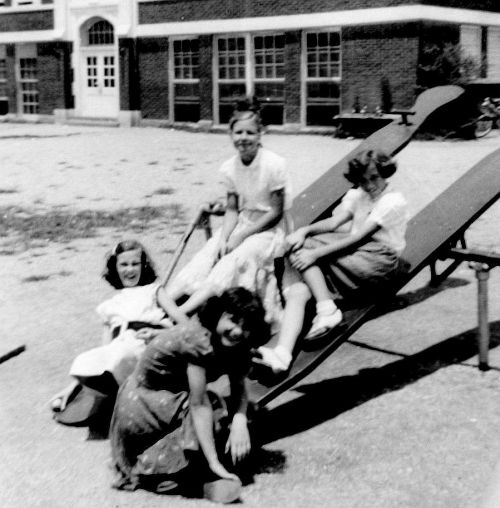 Playground at Young School (enlarge) Left: Mrs. H.L. Coody (wife of the high school principal, taught at both Young and Hodges). Right: Mrs. Cozette Penny (6th grade teacher).