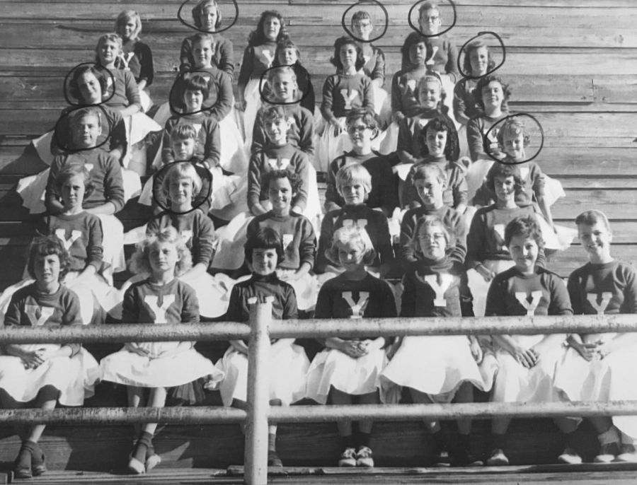 Young School Twirlers in 1961 Back row: Cheryl Huffman, Kay Wilhelm, Teresa Huling, Betty Jo Weeks, Linda Kay White. Front row: Jane Ann Bradford, Dorothy Ann Oliver, & Pam Dennis. (Photos courtesy of Linda White Miller)
