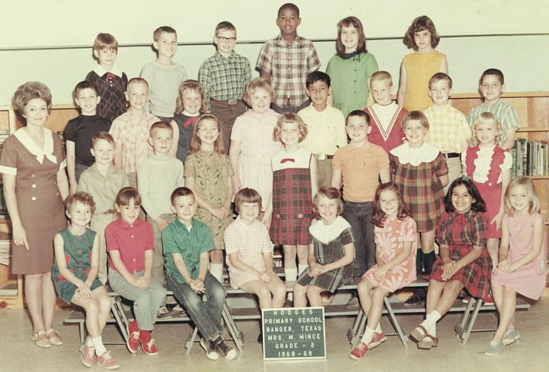 RHS-1979 2nd grade at Hodges in 1968-69 (enlarge) Fourth row (L-R): Cindy Murray, unknown, Stanley Crawford, Chris Lewis, Karen Squyres, unknown Third row: Damon Day, Kenneth (Tackett) Hess, Celeste Bullock, Cindy Moorehead, Robert (Blue) Martinez, unknown, Mitch Riffle, David Perrin Second row: Clark McNabb, Albert Thackerson, Diana Herod, Darla Beck, Jeff Aldridge, Cindy Brown, Beth Hodge Front row: Tammy Reed, Debbie Rose, Robert Hodges, Joy Weekes, Cynthia Walton, Gay Wilson, Camacho?, unknown Mrs. M. Mince (teacher).