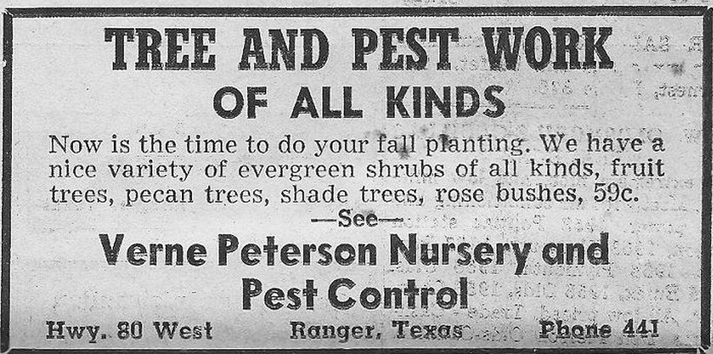 VERNE PETERSON NURSERY & PEST CONTROL Newspaper ad