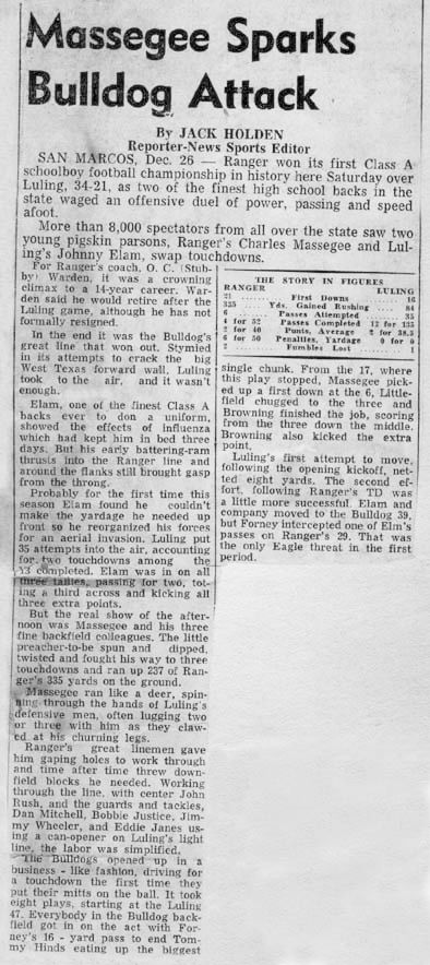 they had defeated Luling, 34-21, for the Class A State Football