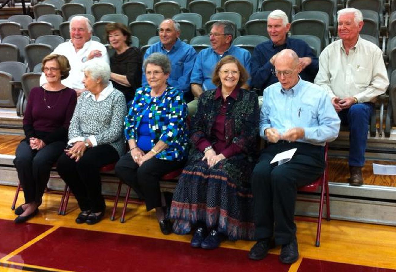 RHS-1954 Homecoming in 2014 (enlarge) Back row: Jerry Simmons, Mary Wallace Cowan, ?, Don Dooley, John Carver, Ralph Frank. Front: Joyce Dempsey Browning, Mary Stie, Jenna Hatton Miller, Cevellia Woods Barron, Bill Mac Nichols.
