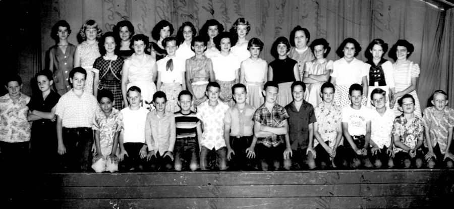 Graduates from Miss Worden's room at Hodge Oak in 1954 (enlarge) Back row: Ann Robinson, Mary Kay Rush, Linda Anable, Kathy Rogers, Norma Gayle Emfinger, Patsy Graham, Sharon Sledge, Mike Herrington, Billy Joe Beggs, Thomas Chrestman, Sidney Birdett. Front row: Glenda Lee, Karen Killingsworth, Voncille Wells, Marinell Shockey, Sandra Cooper, Marilyn Warden, Robert Earl Wesley, Walter Blackwell, Robert Simmons.