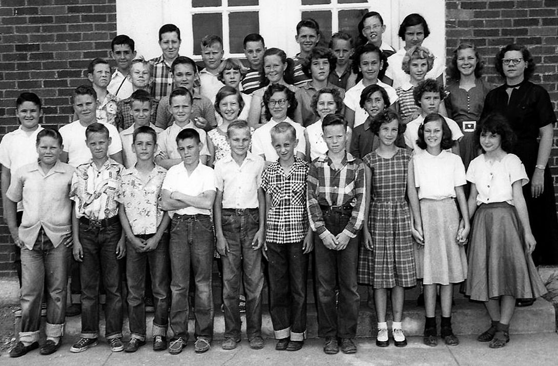 RHS-1960-6th grade at Young school in 1954/55 (enlarge) Fourth row (L-R): Robert Don Hodges, Wilburn Dawson, Douglas Rogers, Robert Fergeson, Walter Hutchins, Jimmy Hamilton, Alfred Rogers, & Joyce Johnson. Third row (L-R): Bill Ables, James Boyvey, Tommy Ford, Carol Phillips, Nellie Sue Vinson, Barbara Crabb, Rita Underwood, Nancy Warren, Phyllis Jean Getts, & Mrs. Cozette Penney. Second row (L-R): Jerry Rhodes, Charles Harper, Mac Jacoby, Earl Reeves, Glenda Rains, Patsy Vinson, Sue Rodgers, Betty Vinson, & Lola Fay Weems. Front row (L-R): Jack Hazard, W.L. Fonville, Ronnie Wynn, Charles White, Roy Gene Ainsworth, Jerry Don Hamilton, Douglas Brown, Mary Judy Getts, Martha Whitehead, & Margaret Obel.