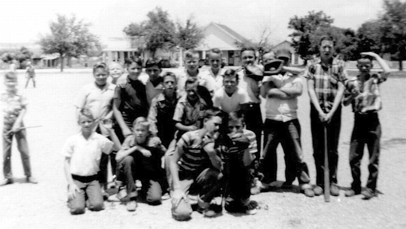 Playground at Young School in 1954 (enlarge) Front(L-R): Mac Jacoby, James Boyvey, ?, ?. Back (L-R): includes Douglas Rogers, Jerry Hamilton, Tommy Ford, Earl Reeves, Jack Hazard, Douglas Brown, Wilburn Dawson, Walter Hutchins, Bill Ables.