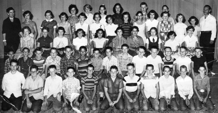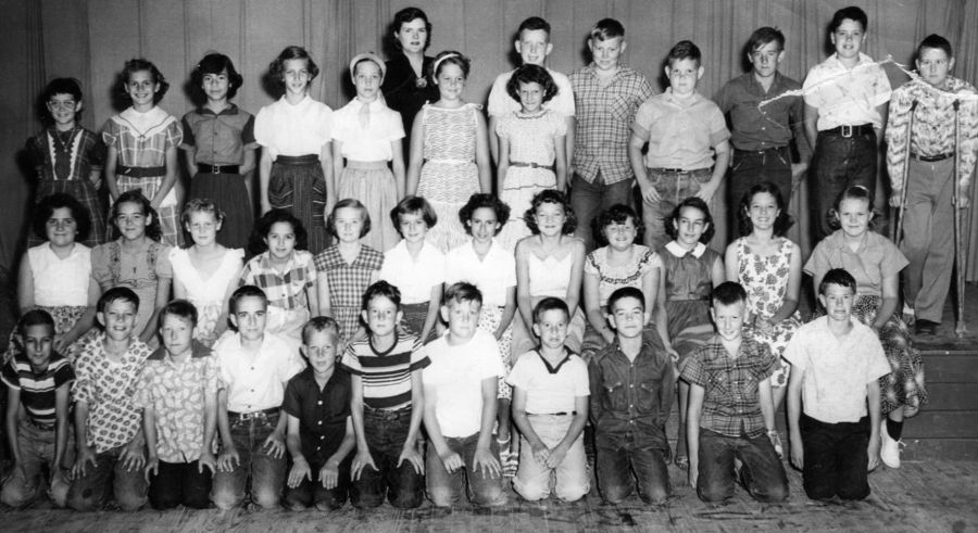 RHS-1961 at Young School (5th-grade) Fourth Row: Mrs Murr (teacher), _ Stephens, Daisy Stewart, Melvin Anderson, Jim Robinson, Gary Bradshaw & Ronnie Daskevich. Third Row: Reed Hunt, Melba Sue Wright, Jerry Whitehead, James Stephens, Bert Young, & David Duncan. Second Row: _?_, Gerald Dempsey, David Ramsey, Frank Ainsworth, Shirley Pugh, Alice Pounds, Bernie Dan Milmo & Tommy Fonville. Front Row: Gene White, Johnny Bob King, W.C. Stewart, Gladys Johnson, Pat Graham & Tommy Smith.