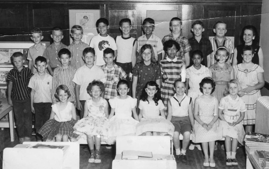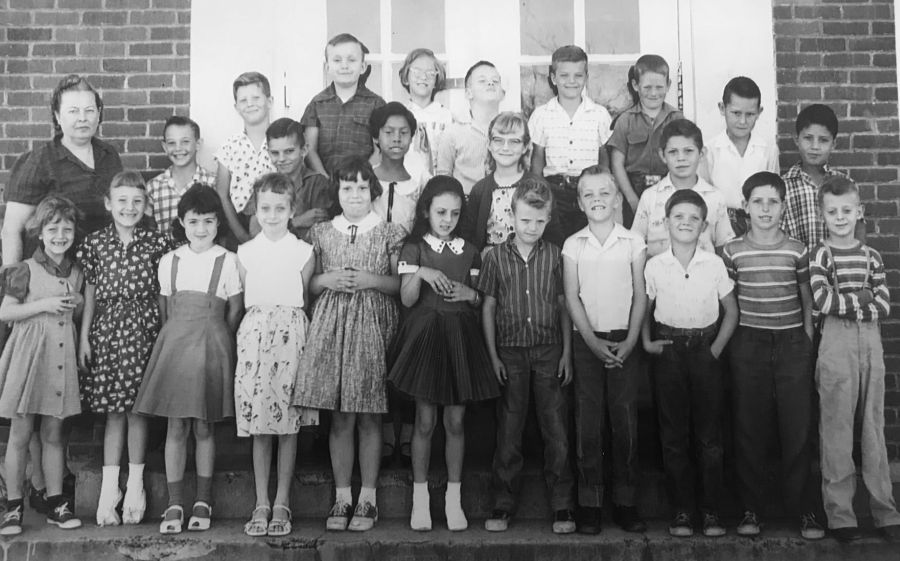 RHS-1967 1st grade at Hodges Oak School in 1956 Top row: Doug Ramey, Marty Walton, Gary Hagar, Tommy Brashier, Billy, Gloria Dewell, Bob , Jerry Watson, Jay Bob, O.J. Caraway, John. Bottom row: Janice Black, Phyllia , Mike Deffenball, Sancha, Alla Rae, Mary Lou White, Jayce, Jimmy Crossley, Elvira, Delores Miller, Jimmy Wayne Williams, Mrs. Wilhelm. (Photo courtesy of Delores Jean Miller Ainsworth)