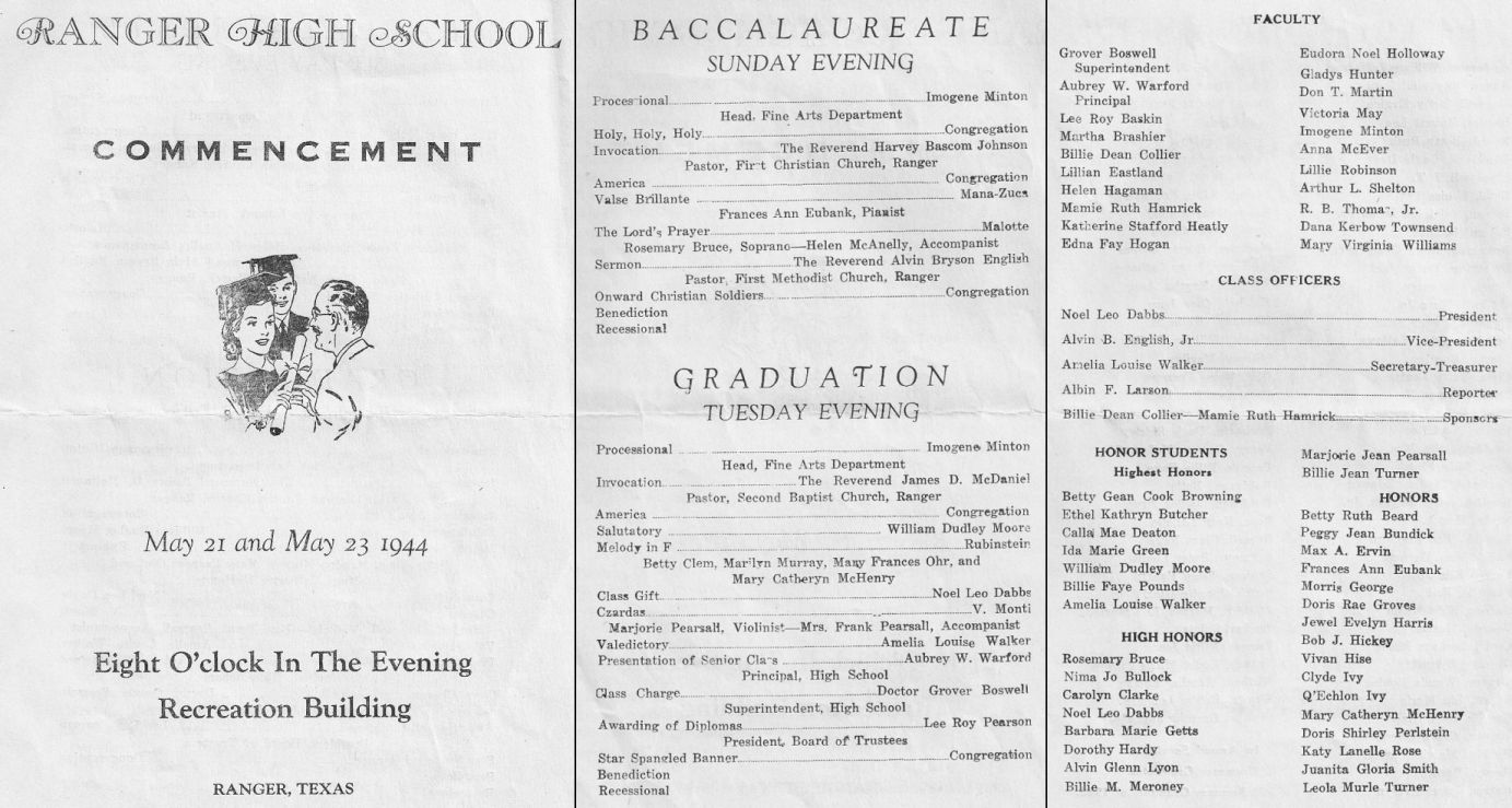 FACULTY: Grover Boswell (Superintendent), Aubrey Warford