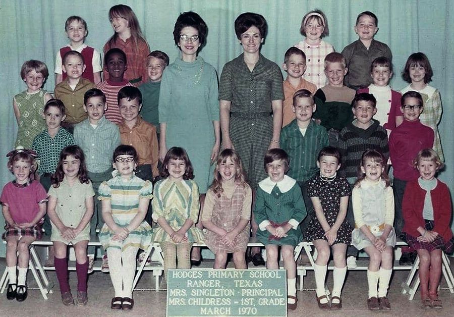 RHS-1981 First Grade at Hodges in 1970 (Enlarge) Names=NA Teacher Mrs. Childress & Teacher Aid Kay King Tibbels, Principle Mrs. Singleton.